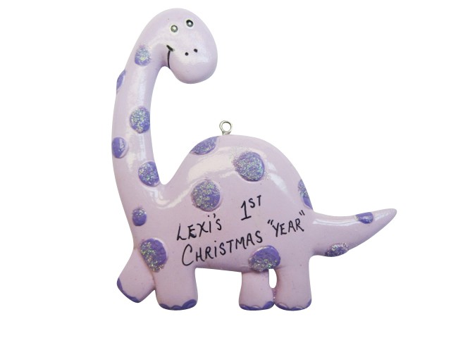 Our jolly dinosaur is the perfect ornament for the child that loves dinosaurs. When personalized it makes a nice Baby’s 1st Christmas Ornament. This is sure to bring smiles for many years and become a treasured keepsake for years to come. Ornament comes with ribbon ready to hang.
