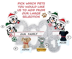 Celebrate 2025 with a Personalized dated Christmas ornament! A Year To Remember! We have even included their pets! A perfect holiday wish for that special Family of 4. We will be happy to hand personalize your ornament to make this a special keepsake to treasure for years to come. Ornament comes with ribbon ready to hang.