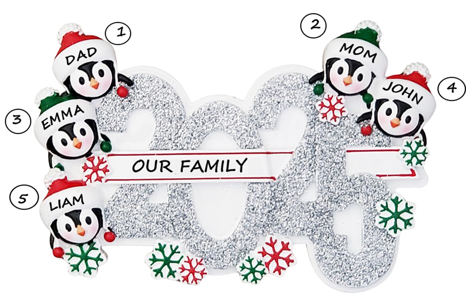 Celebrate 2025 with a Personalized dated Christmas ornament! A Year To Remember! We have even included their pets! A perfect holiday wish for that special Family of 3. We will be happy to hand personalize your ornament to make this a special keepsake to treasure for years to come. Ornament comes with ribbon ready to hang.