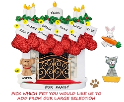 This cozy fireplace Christmas Ornament is a perfect ornament for a Family of 9. We have even included the family pet! Hand painting and a high gloss finish make this high quality ornament bright and sturdy. We hand personalize, creating a thoughtful and unique gift. It's a wonderful present that the entire family will enjoy, for many years to come. This ornament comes strung on ribbon, ready to hang right out of the package.Size is approximately: 3.75"h x 3.5"w