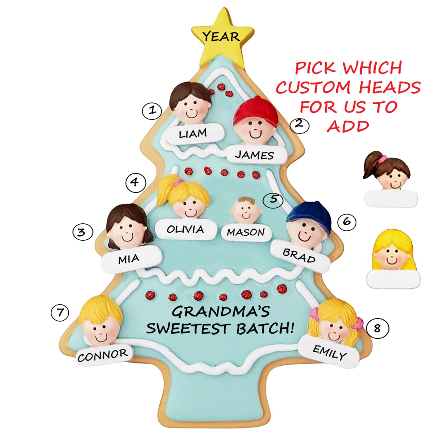 Personalized Christmas Ornament for Grandma with 8 Grandchildren - Grandma's Sweetest Batch - Nana's Ornament - Cookie Tree Ornament