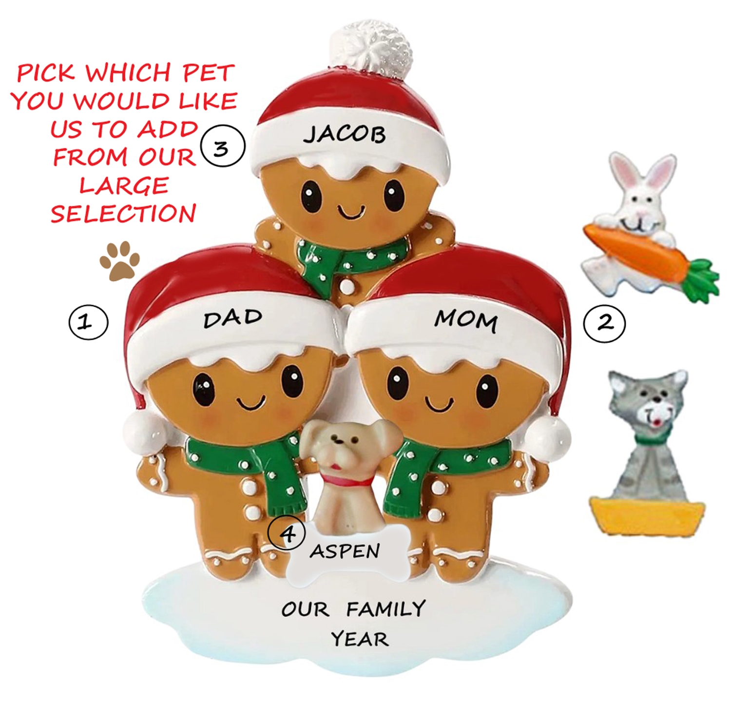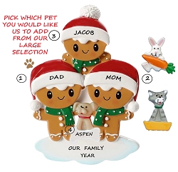 This adorable Personalized Christmas Ornament is perfect for the family of 3. We have even included the family pet! Hand painting and a high gloss finish make this high quality ornament bright and sturdy. We hand personalize, creating a thoughtful and unique gift. It's a wonderful present that the entire family will enjoy, for many years to come. This ornament comes strung on red ribbon, ready to hang right out of the package.