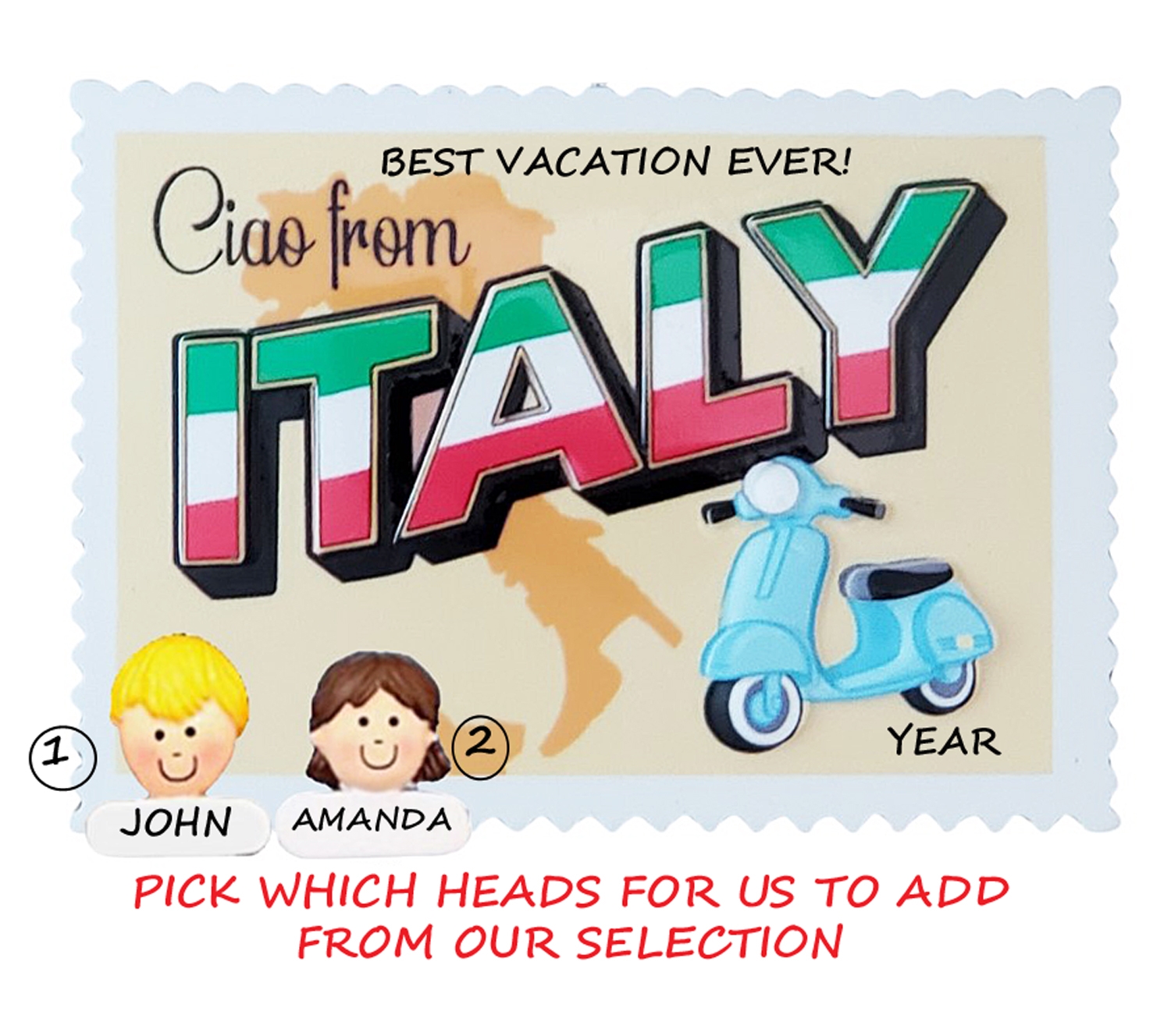 This ornament is the perfect Christmas ornament to remember a special trip to Italy. We can hand personalize this to make it a reminder of a magical trip to see this beautiful country. Ornament comes with ribbon ready to hang.Size is approximately: 3.75"h x 4"wPlease note: Ciao From Italy is pre-printed.