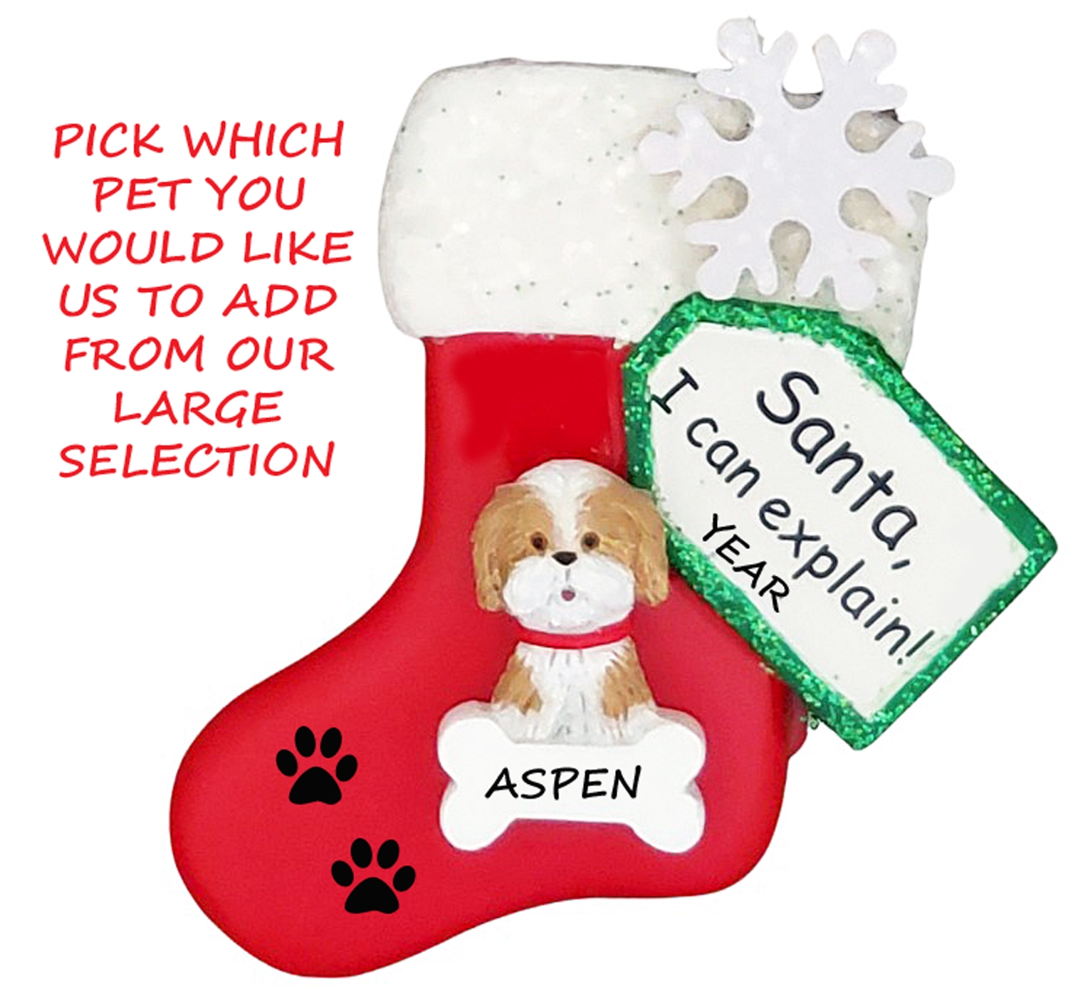 This small stocking Personalized Ornament is perfect for the family pet that may sometimes not behave. Ornament can hang on the Christmas Tree or be used as a magnet for the fridge. It is not a toy and not suitable for children under 12.