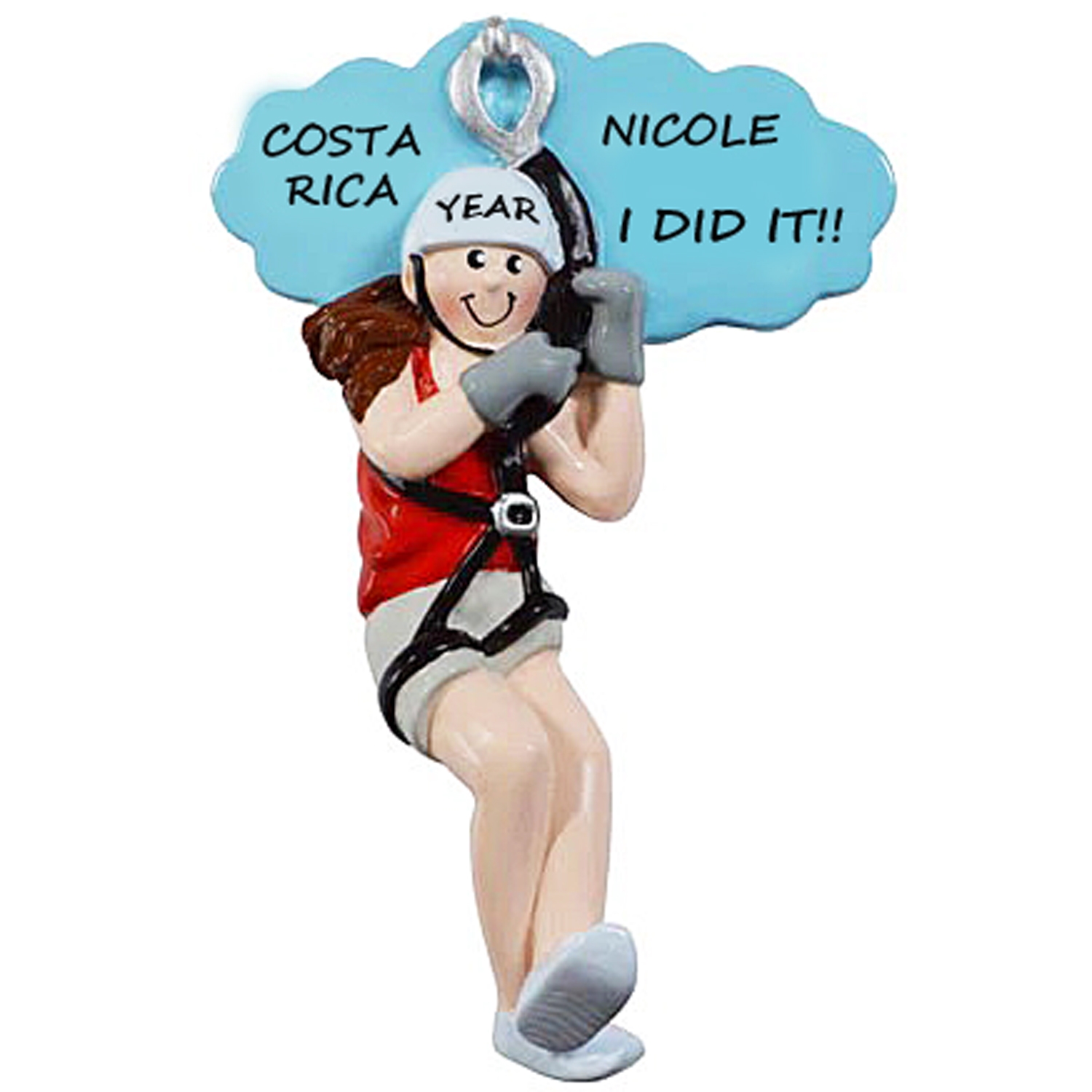 These adorable Personalized Christmas Ornaments of people ziplining is the perfect ornament for someone that went ziplining for the 1st time or someone that has a love for ziplining. We can custom personalize this to make it a treasured keepsake to remember this fun time. Ornament comes with ribbon ready to hang.