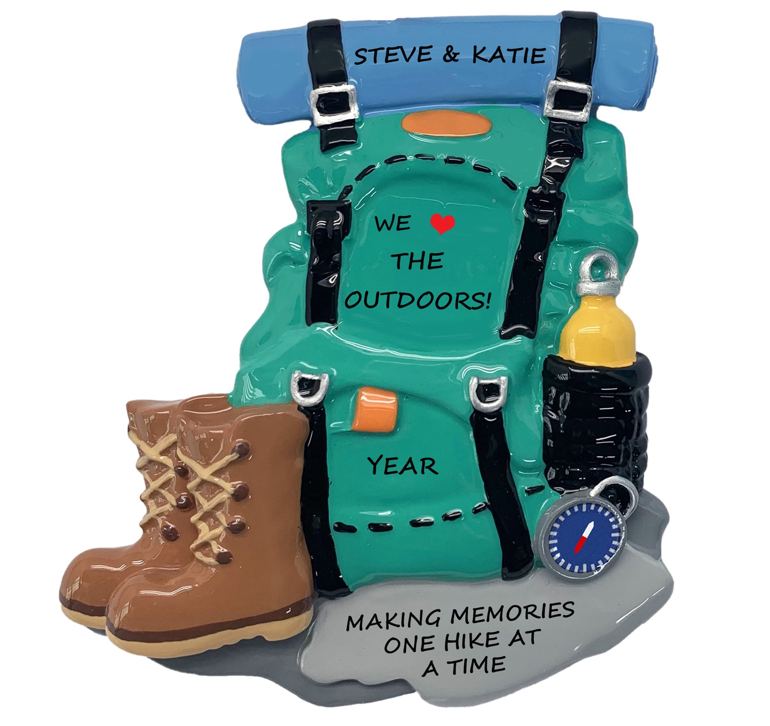 This hiking backpack Christmas ornament is perfect for the couple or person that loves hiking. We can hand personalized this to make it a keepsake to remember this fun time enjoying the trails. Ornament comes with ribbon ready to hang.Size is approximately: 3.75"h x 3.25"w