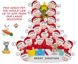 Family or Group of 18 Personalized Ornament with Custom Dog, Cat or Bunny Added - 18 People Ornament with Dog, Cat or Bunny Added