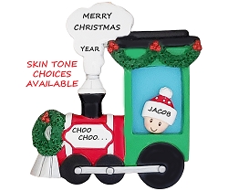 Personalized Christmas Train Ornament - Personalized Train Lover Christmas Ornament - Personalized Train Ornament Ethnic Skin Tones