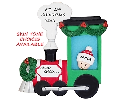 Personalized Christmas Train Ornament - Personalized Baby's 2nd Christmas Ornament - Personalized Train Ornament Ethnic Skin Tones