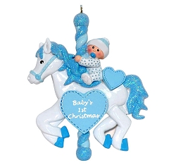 Baby's First Christmas Personalized Ornament -Baby Boy's 1st Christmas Carousel Ornament