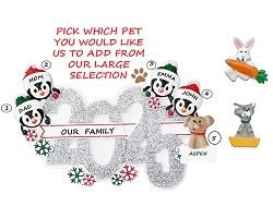 Snow Family of 4 Personalized Ornament with 2 Custom Dogs, Cats or Bunnies Added