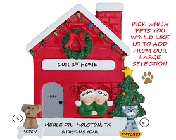 1st Christmas In New Home Personalized Ornament with 2 Custom Pets Added